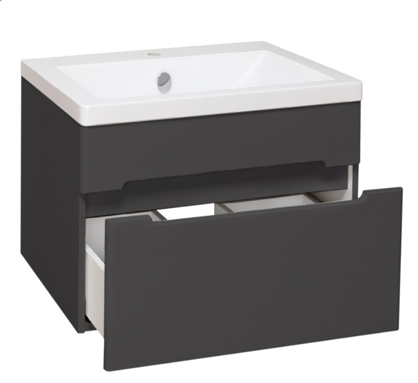 Тумба под раковину Runo графит 1 ящик подвесная (под умывальник Omega 60) Парма 60 (00-00001428)