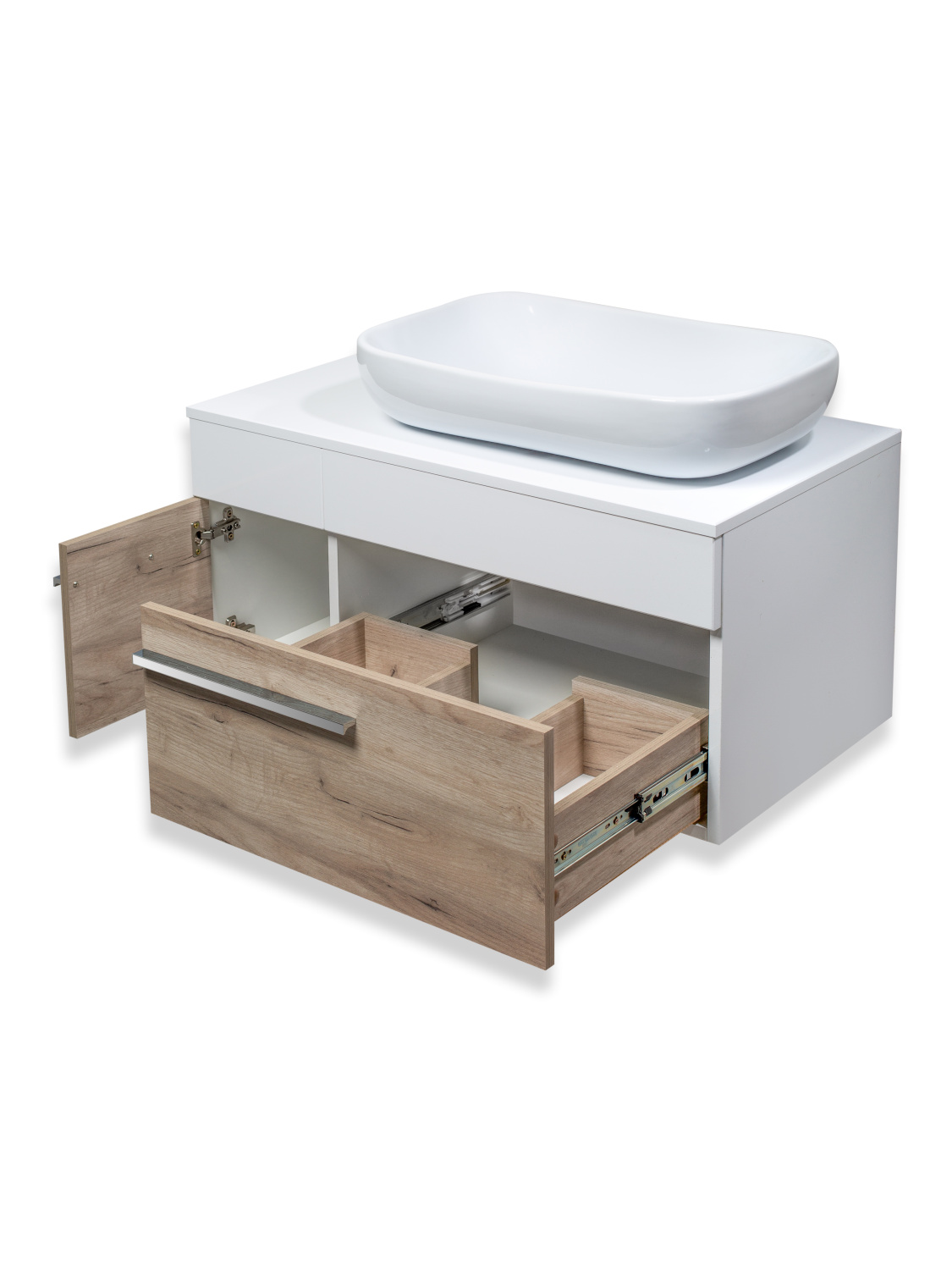 Тумба под раковину Runo подвесная крафтовый дуб Вудлайн 85 (00-00001344)