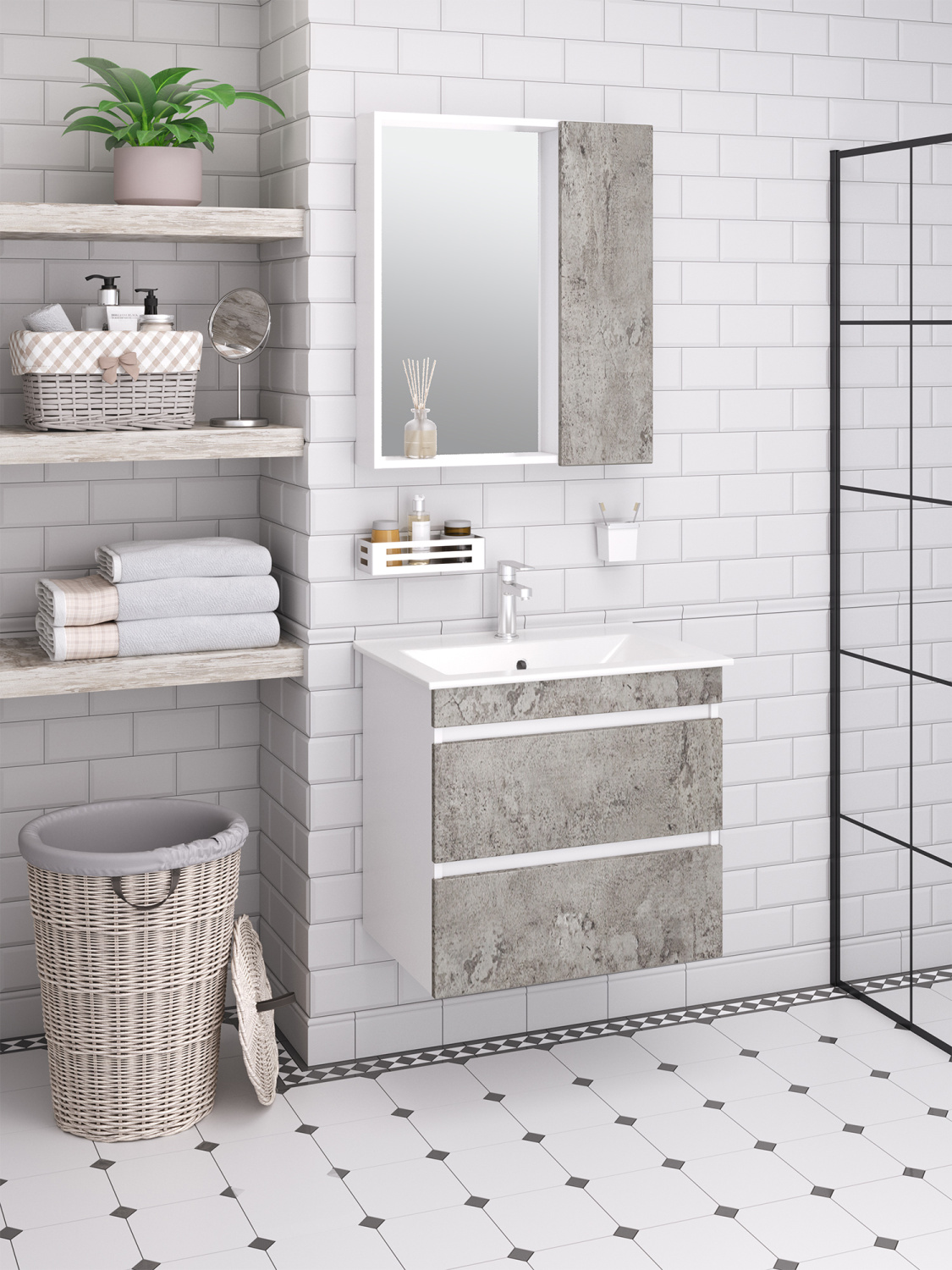 Тумба под раковину Runo подвесная серый бетон (под умывальник Оскар 75 Оскар 75) Манхэттен 75 (00-00