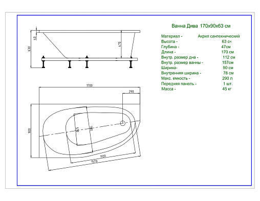 • каркас (или универсальная опора), слив-перелив, фронтальный и боковой экраны в комплект не входят и поставляются отдельно