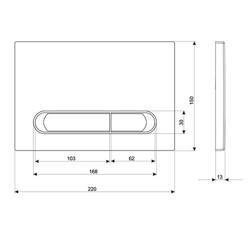 Кнопка изготовлена из пластика для двухуровневого механизма смыва