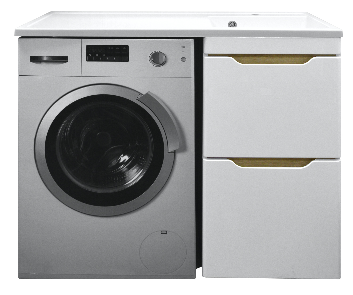 Комплект Тумба 120 Magenta под с/машинку (56) с раковиной Magenta 120 правая белая