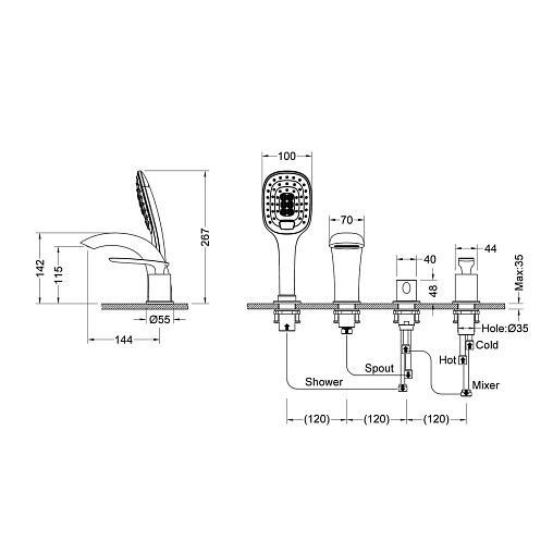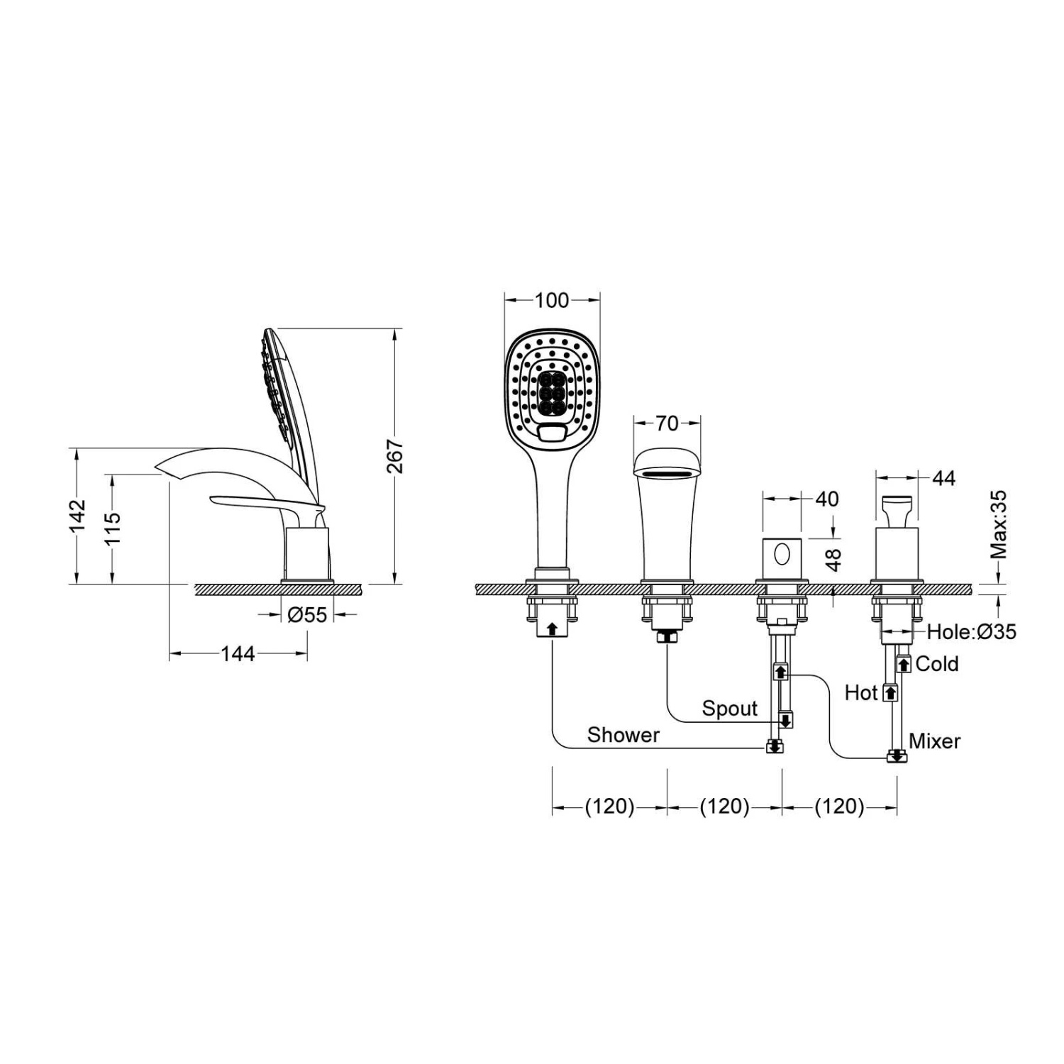 Смеситель для ванны и душа, врезной Timo Helmi (4020/03Y) черный