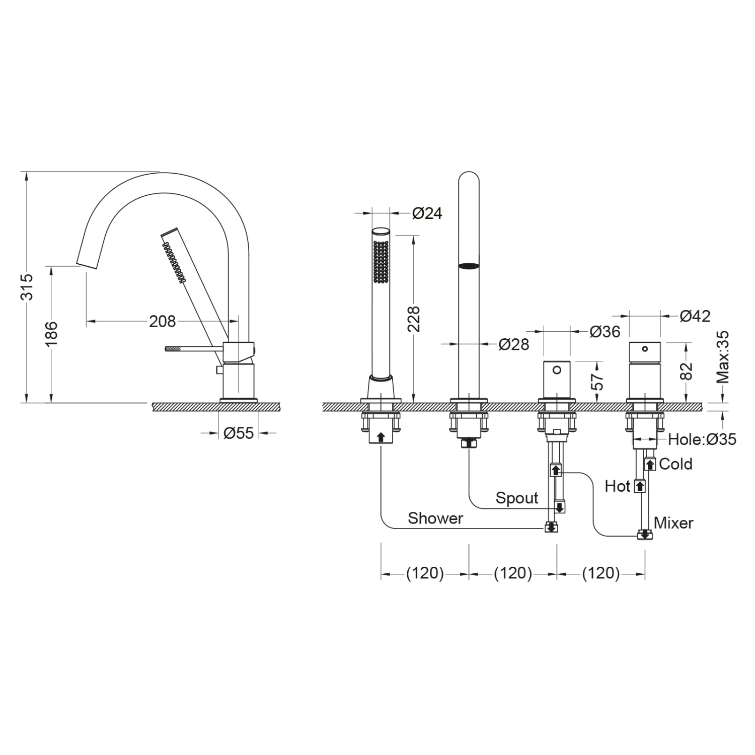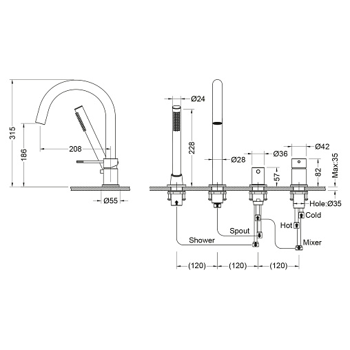 Смеситель для ванны с душем, врезной Timo Saona черное золото (2320/18Y)