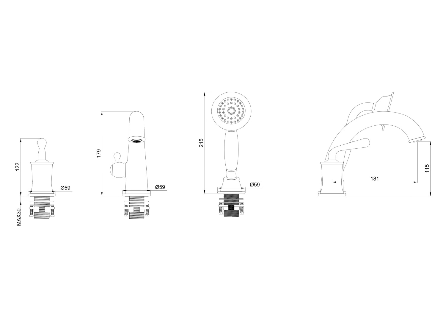 Смеситель на борт ванны WONZON & WOGHAND, Черный матовый (WW-88659008-MB)