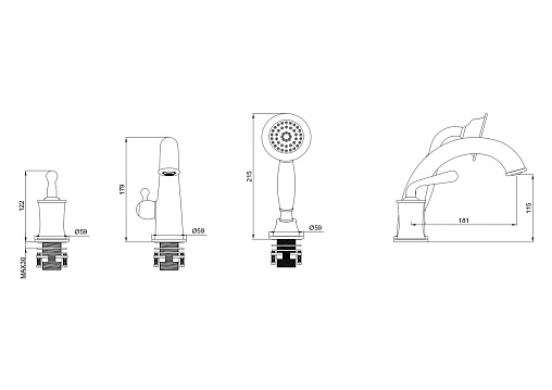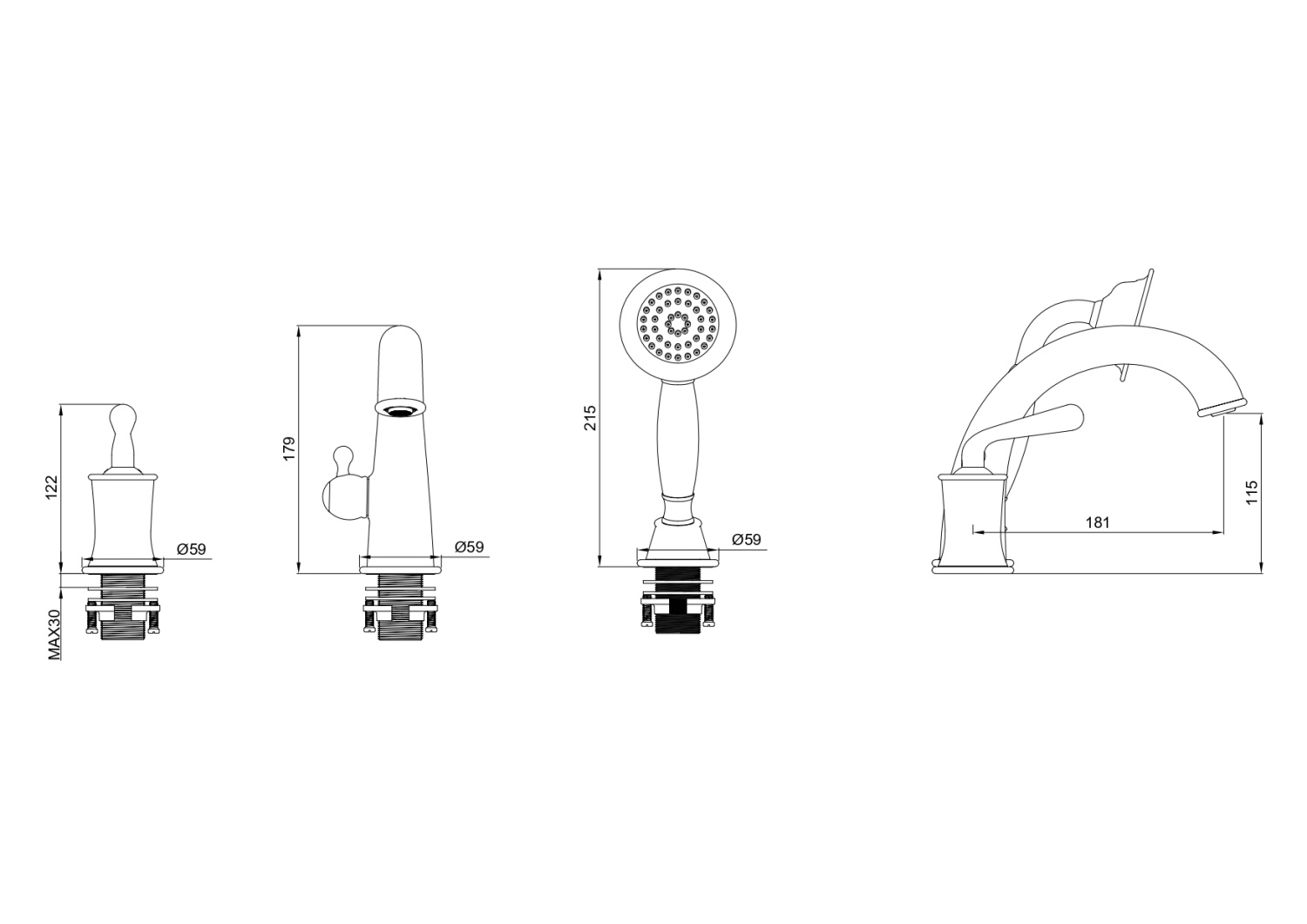 Смеситель на борт ванны Wonzon & Woghand, Темный графит (WW-88659008-BGM)
