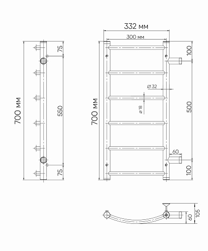 Полотенцесушитель водяной INDIGO Arc с боковым подключением в размере 700х300 (ВхШ) выбирают за его классический вид – лесенки и функциональность. Модель изготовлена из высококачественной нержавеющей стали. Качественная металлообработка в местах подключений обеспечивает плотное прилегание прокладки. Полотенцесушитель проходит тщательный этап полировки, поэтому обладает безупречным блеском. В комплектацию входит изделие, гарантийный талон, держатели 4 шт., заглушка, кран Маевского. Для монтажа необходимо отдельно приобрести нужные вам фитинги.
