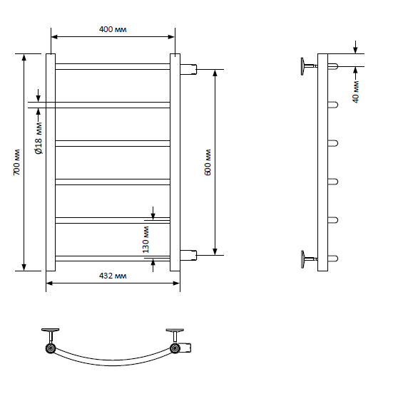 Полотенцесушитель водяной INDIGO Arc с боковым подключением в размере 700х400 (ВхШ) выбирают за его классический вид – лесенки и функциональность. Модель изготовлена из высококачественной нержавеющей стали. Качественная металлообработка в местах подключений обеспечивает плотное прилегание прокладки. Изделие окрашено порошковой краской по специальной технологии. В комплектацию входит изделие, гарантийный талон, держатели 4 шт., заглушка, кран Маевского. Для монтажа необходимо отдельно приобрести нужные вам фитинги.