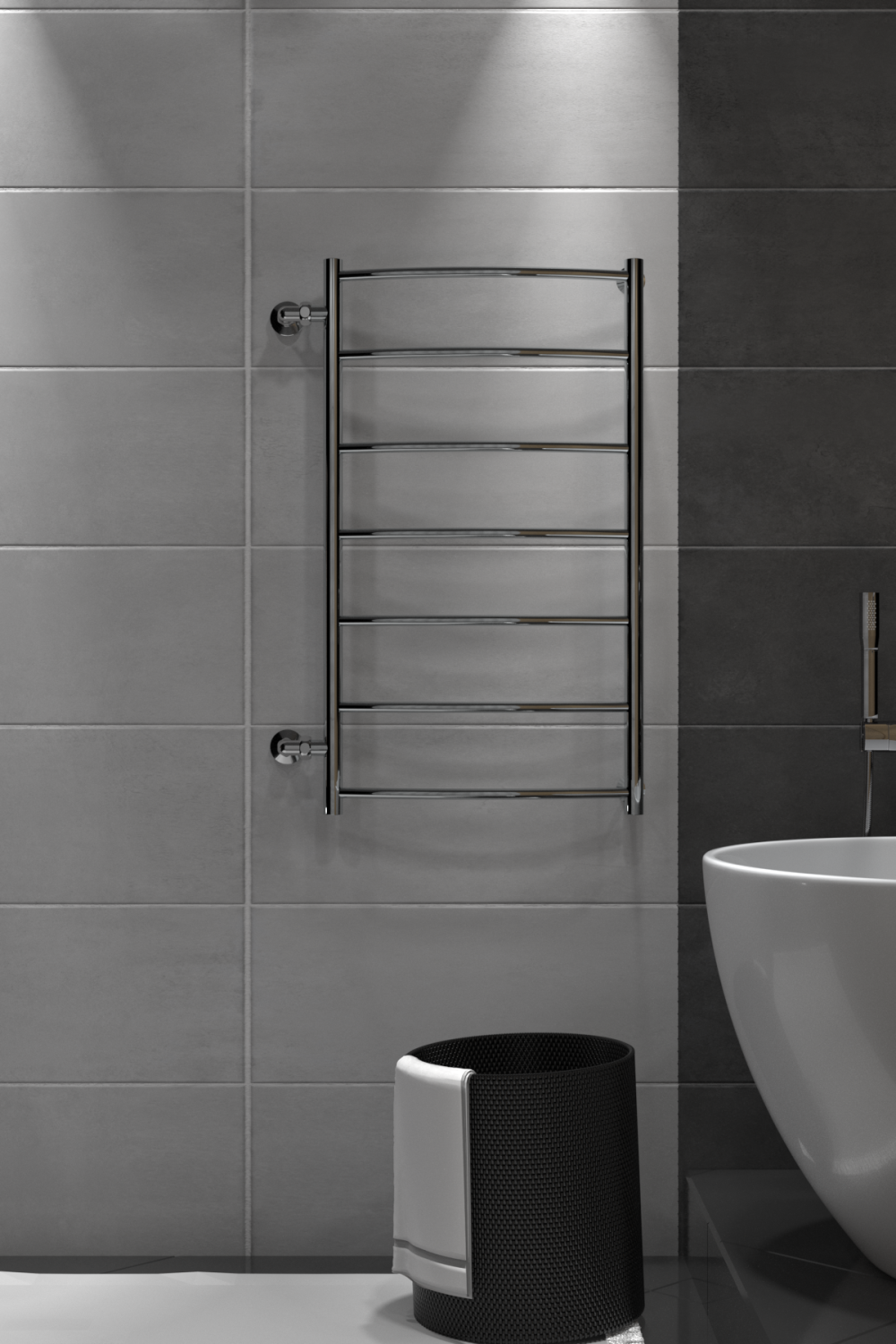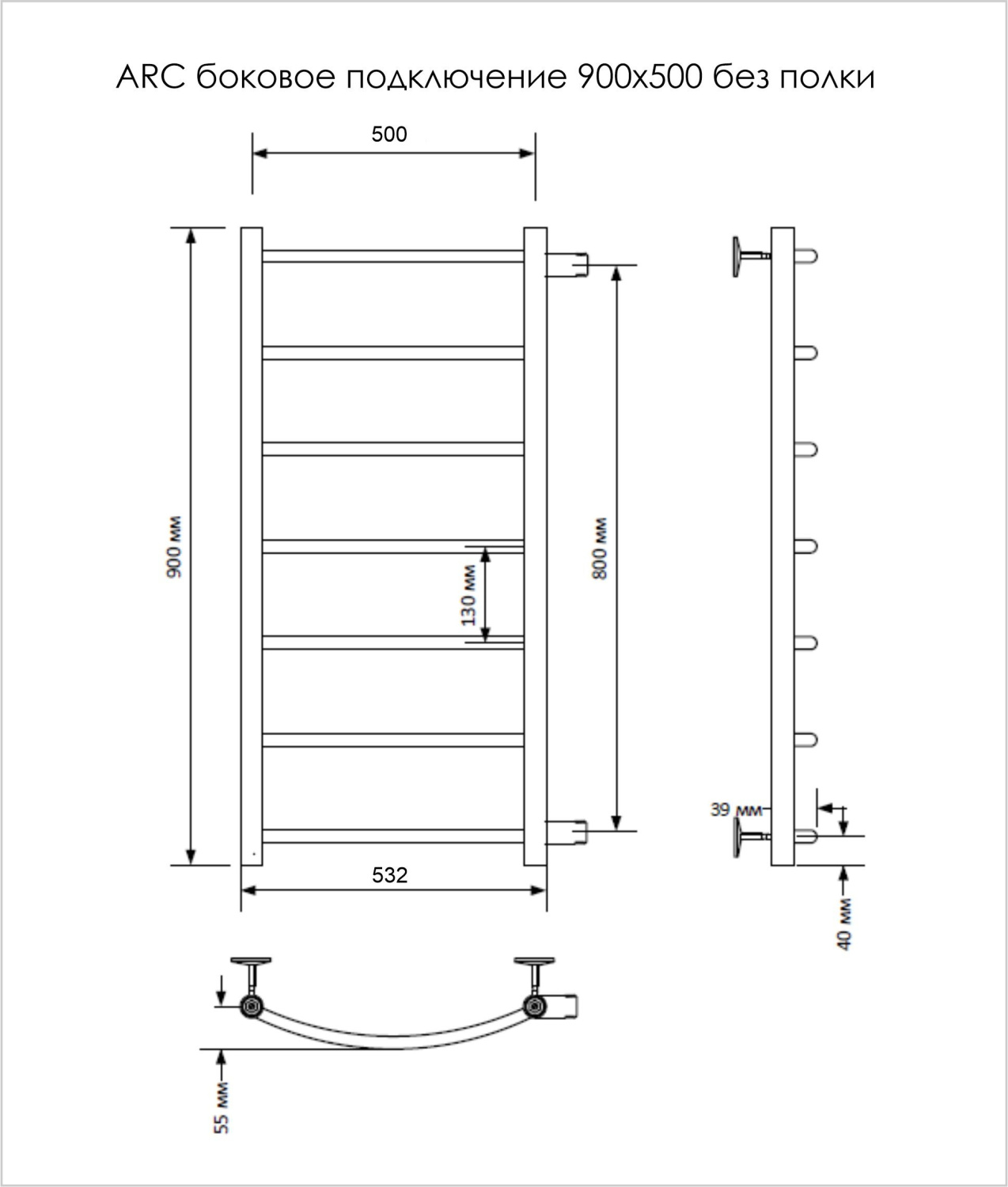 Полотенцесушитель Arc б/п (н.р.1") 90/50 м/о 80 бок.подкл. (к-2, Полиров.) INDIGO