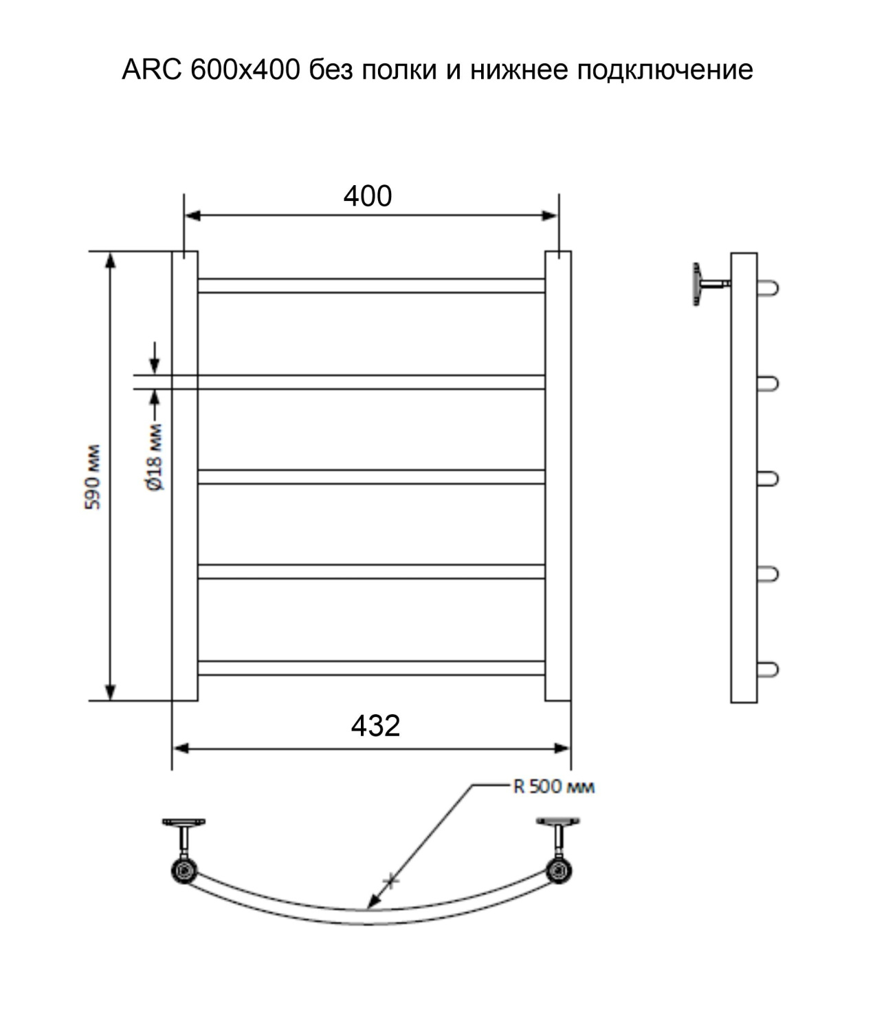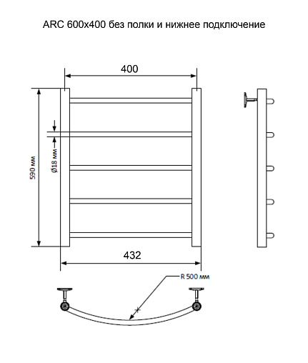 Полотенцесушитель Arc б/п (в.р.1/2") 60/40 (к-1, Полиров.) INDIGO