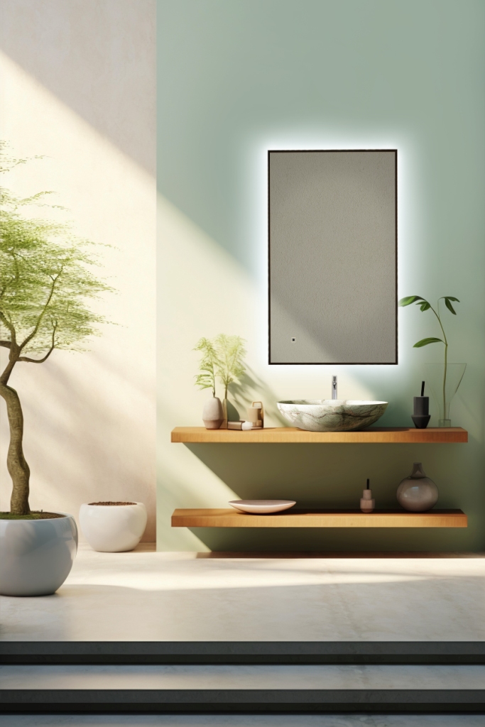 Тонкая окантовка с нанесением краски отвечает глобальному тренду на интерьерный минимализм, смотрится легче, чем традиционная рама и при этом чётко выделяет границы зеркала. Контраст с окружающей поверхностью и подсветка с эффектом «парения» делают модель выразительной деталью интерьера. Усилить или приглушить контрастность можно бесконтактным сенсорным выключателем с функцией диммера. Функция памяти предназначена для запоминания последней настройки яркости. Функция подогрева исключит запотевание зеркала и подготовит его для комфортного использования. Возможность как горизонтального, так и вертикального расположения наделяет модель архитектурными свойствами по преображению пространства.