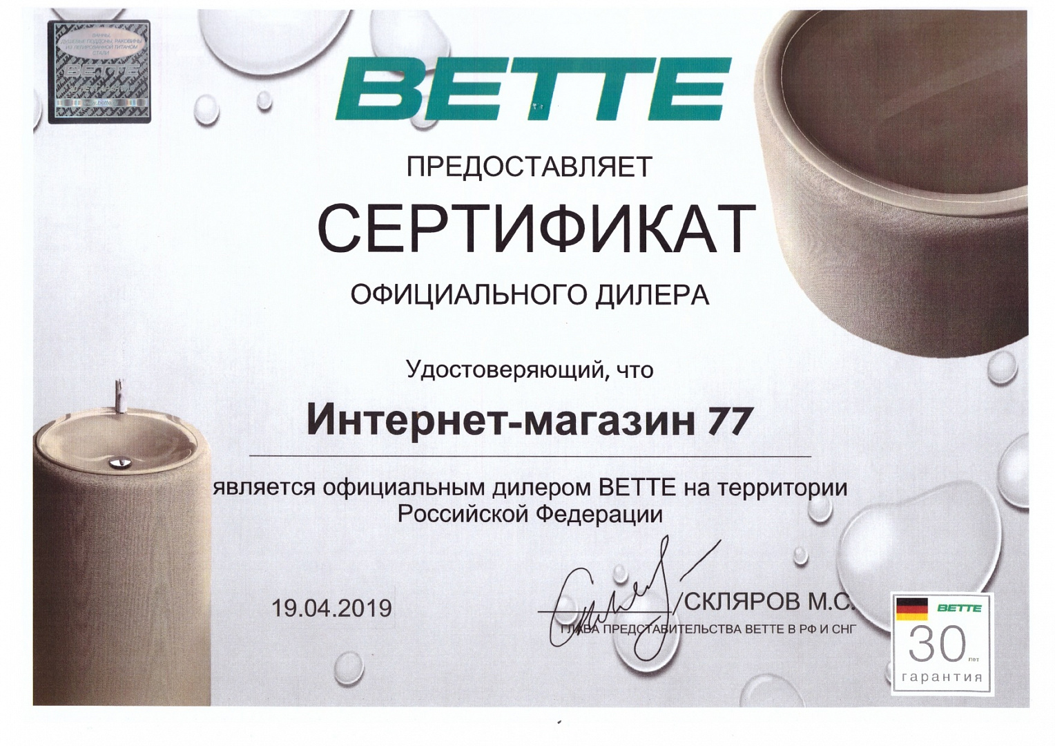 Bette выпускает продукцию исключительно в Дельбрюке, Вестфалия, что в Германии. Компания Bette – это семейная компания, которая производит высококачественную интерьерную сантехнику из настоящей глазурованной титановой стали с 1952 года.Компания Bette первая, кто создала отдельно стоящую бесшовную ванну, поставила системы элементов для ванной комнаты – с ванной, умывальником и душевым поддоном из глазурованной титановой стали, представила первую душевую панель вровень с полом и разработала перспективные системные решения для долговременной и совершенной установки.
