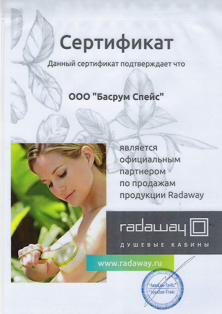 Компания Radaway была основана в 2002 году и занимается исключительно производством душевых кабин, в том числе по индивидуальным заказам. Завод расположен в Польше (гмина Сважендз, административная единица Познанского повята). Своей миссией RADAWAY считают создание практичных вещей, улучшающих комфорт жизни.