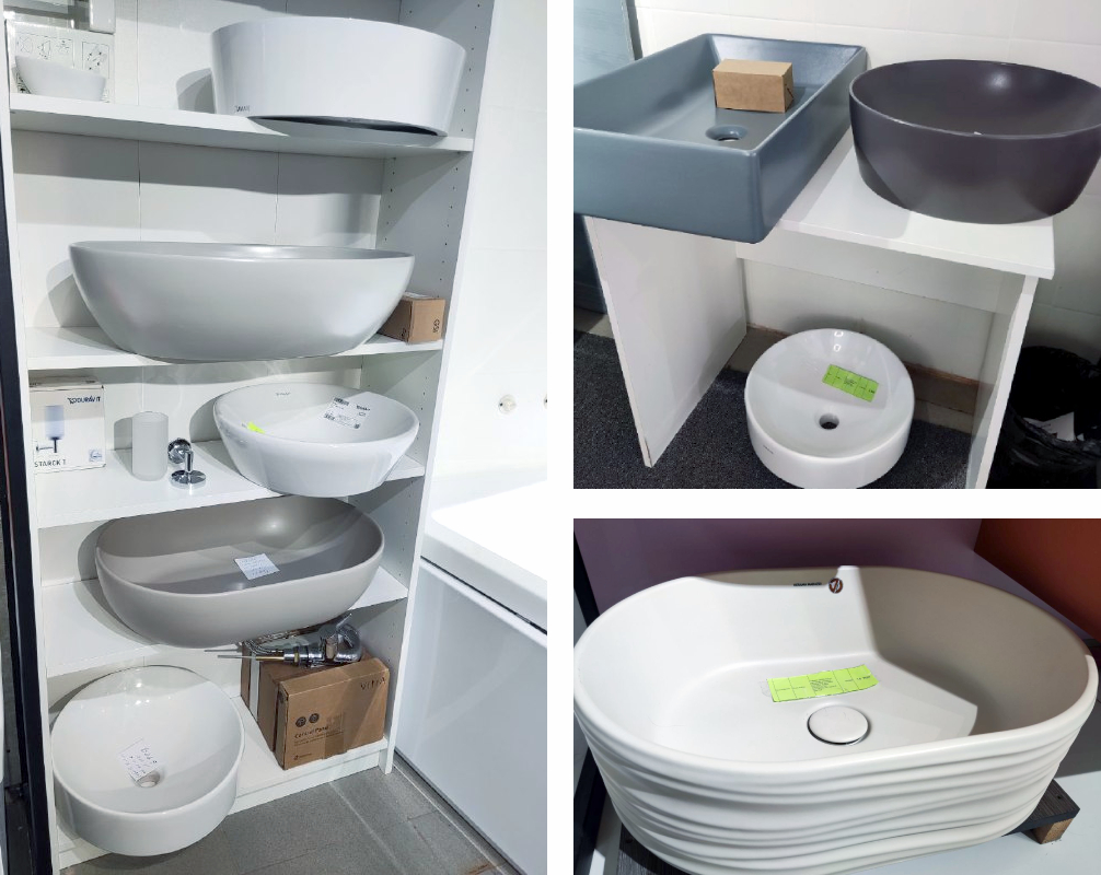 - выставочные образцы мебели (Laufen, Riho, Kobos, Roca, Duravit и др.)