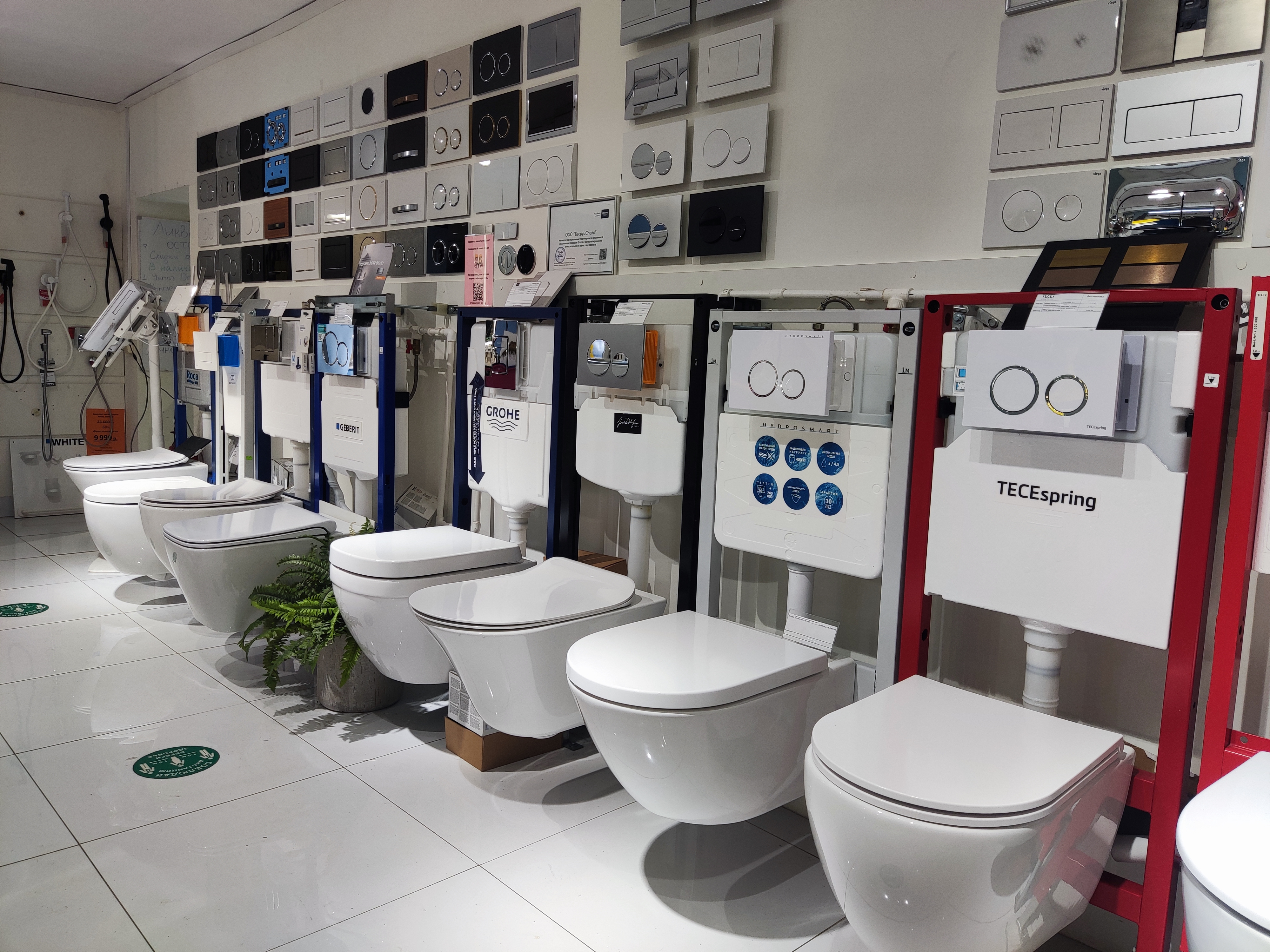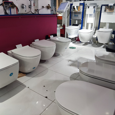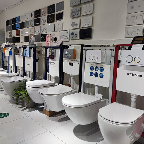 шоурум действующих инсталляций: демонстрация смыва унитазов