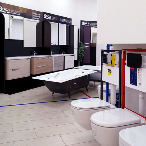 При выборе санитарной керамики одним из главных параметров для каждого покупателя являются пользовательские свойства изделия: шум, объем и сила смыва, направление смывного потока и прочее. В салоне представлены системы инсталляции и подвесные унитазы известных европейских брендов (Roca, Laufen, Geberit, Grohe, Viega, Tece). Они подключены к воде для демонстрации смыва.