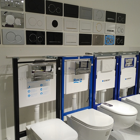 шоурум действующих инсталляций: демонстрация смыва унитазов